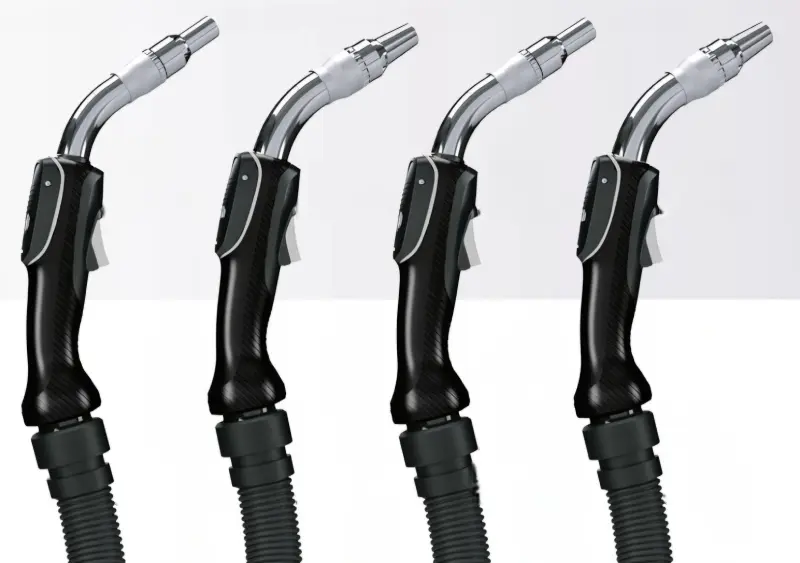 De goede ergonomie en kwaliteit van zwanenhals, handvat en slangenpakket vermindert de vermoeidheid en verhoogt de laskwaliteit.